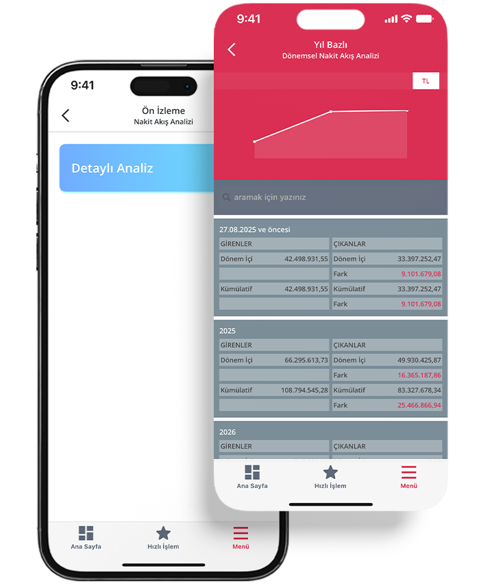 Yıl bazlı veya özel dönemlerde giren ve çıkan nakitleri ayrı ayrı görün; farkları ve trendleri anında analiz edin.