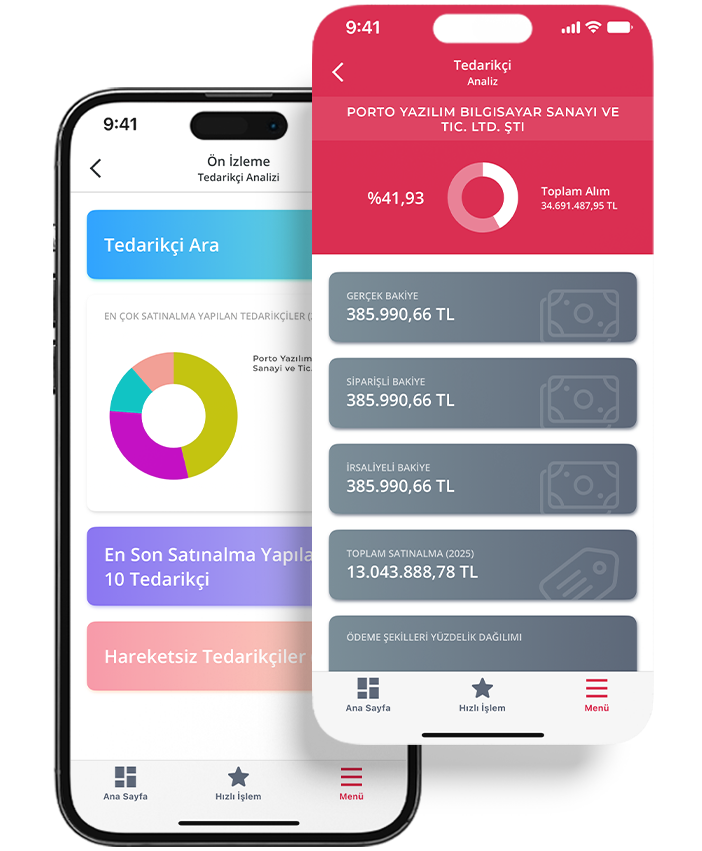 Tarih ve dönem filtreleri ile satınalma trendlerini ve tedarikçi performansını anlık analiz edin.
